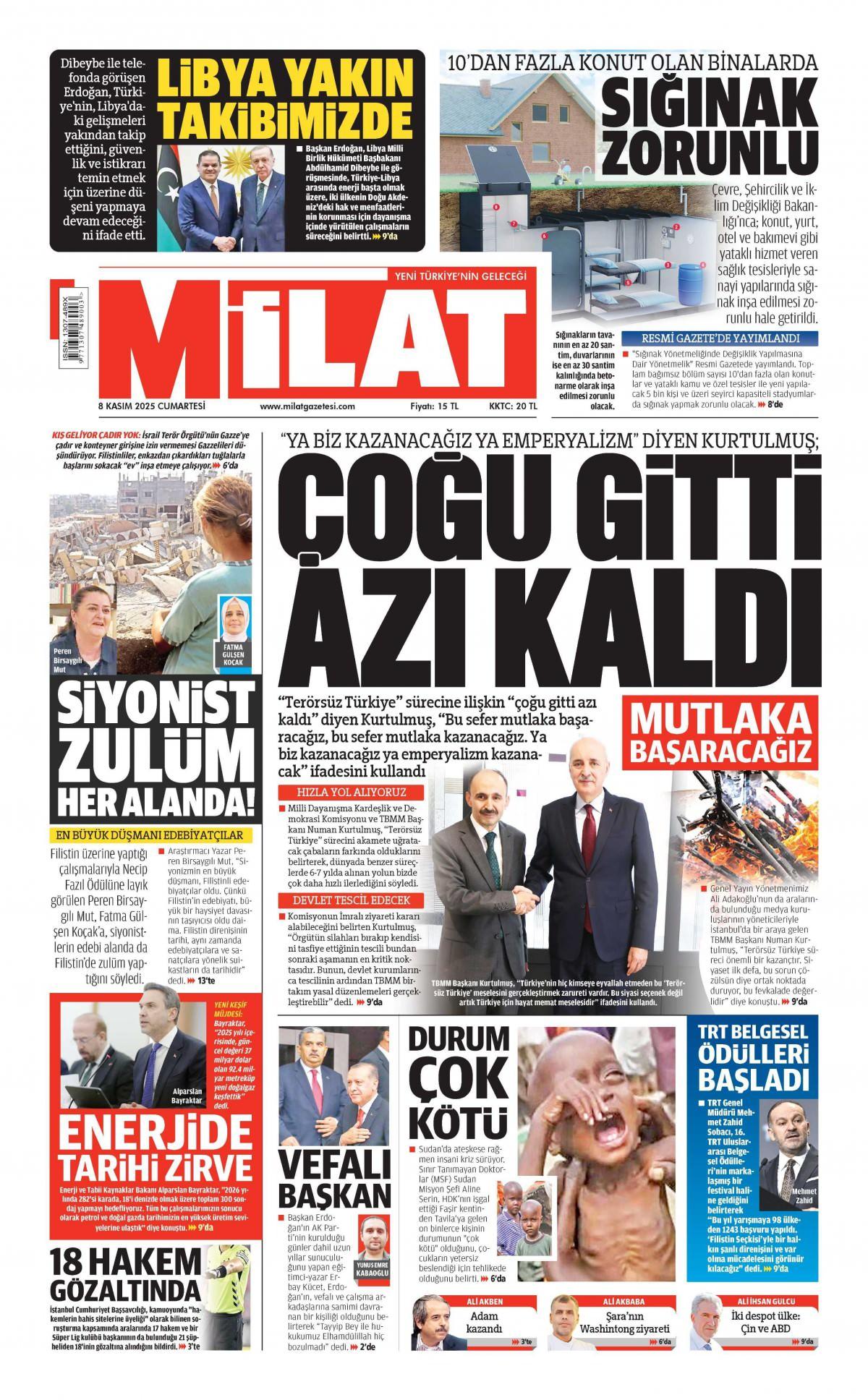 Milat Gazetesi 8 Kasım 2025 Günü Manşeti