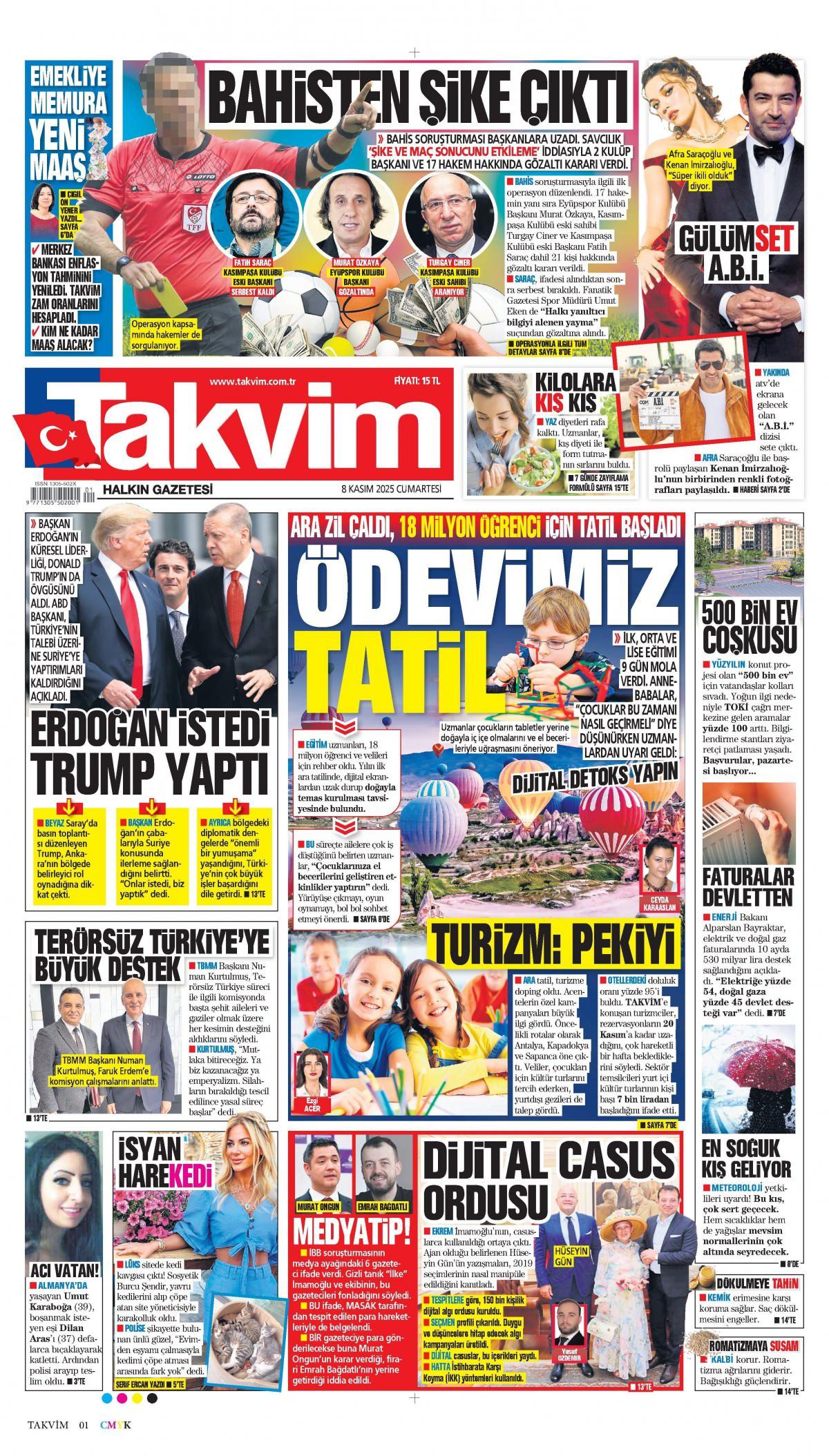 Takvim Gazetesi 8 Kasım 2025 Günü Manşeti