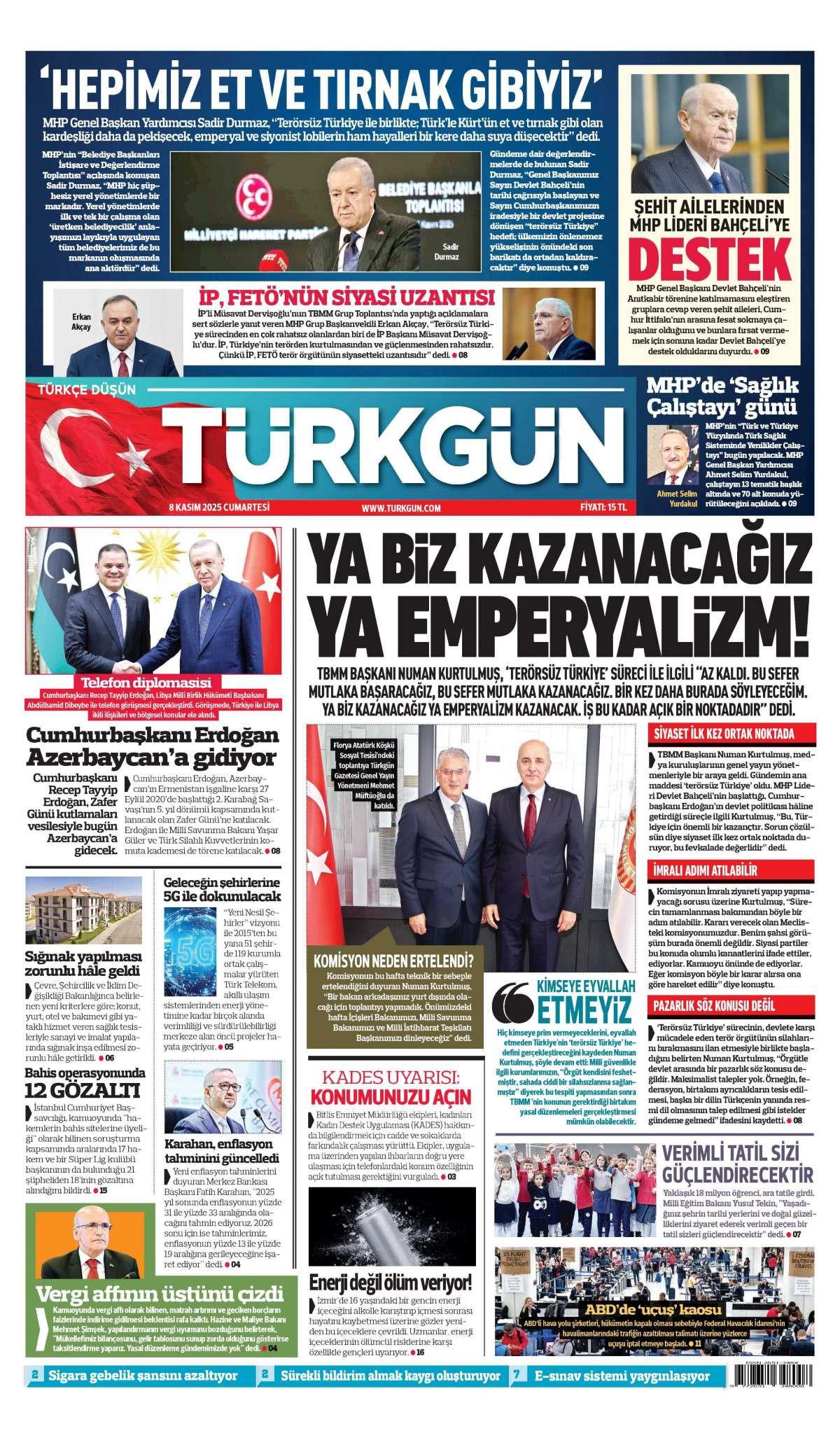 Türkgün Gazetesi 8 Kasım 2025 Günü Manşeti