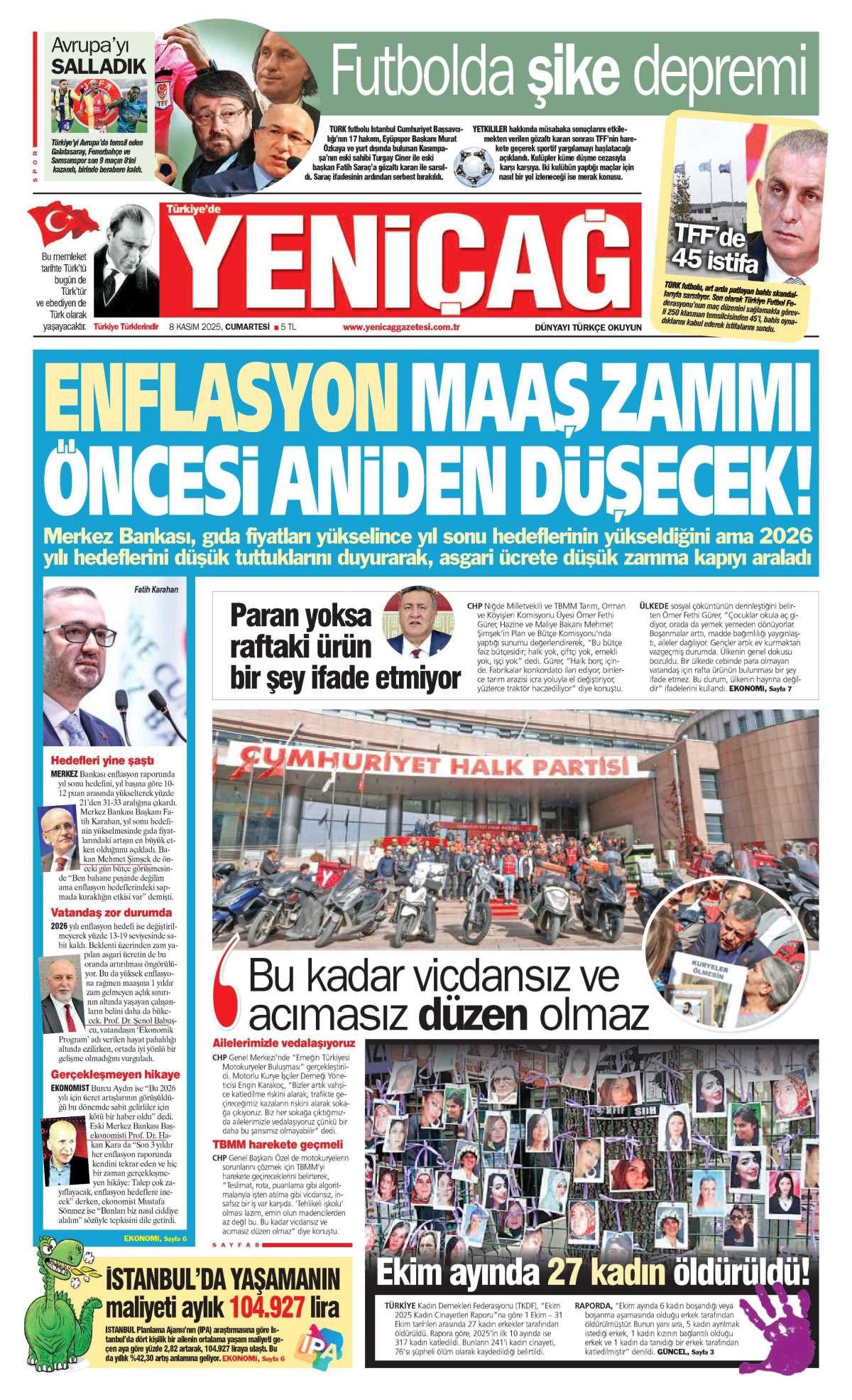 Yeni Çağ Gazetesi 8 Kasım 2025 Günü Manşeti